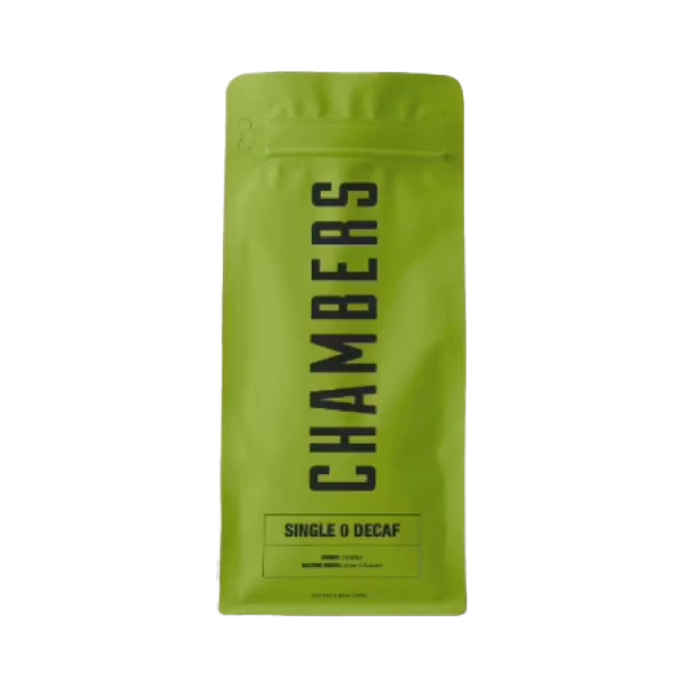 Chambers Decaf Swiss water processed coffee uses 100% Arabica varietals from Colombia. The Swiss Water process is well known in the coffee industry as a safe method that allows caffeine to be removed from green beans while still retaining its flavor. This blend has notes of Dark Chocolate and Berries. Roasted and packed in Australia.